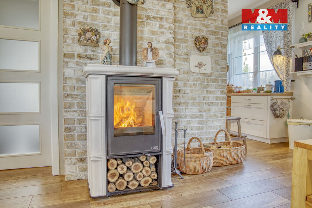 Parkování bez starostí: garáž, stání na pozemku i na ulici. Zahrada okrasná i užitková, oplocená, doplněná o dílnu a kůlnu. Příjezd zpevněný, vhodný i pro nákladní auta. Uvnitř keramické podlahy, dřevěné stropy a koupelna s vanou, sprchou i bidetem.