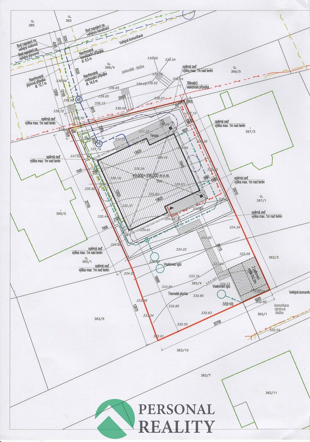 Pozemek se prodává s projektovou dokumentací na výstavbu rodinného domu typu bungalov o velikosti 5+1, ke které bylo již vydáno stavební povolení a schváleny všechny přípojky. Byla zahájena výstavba základů a rozvedení sítí pod základovou deskou.