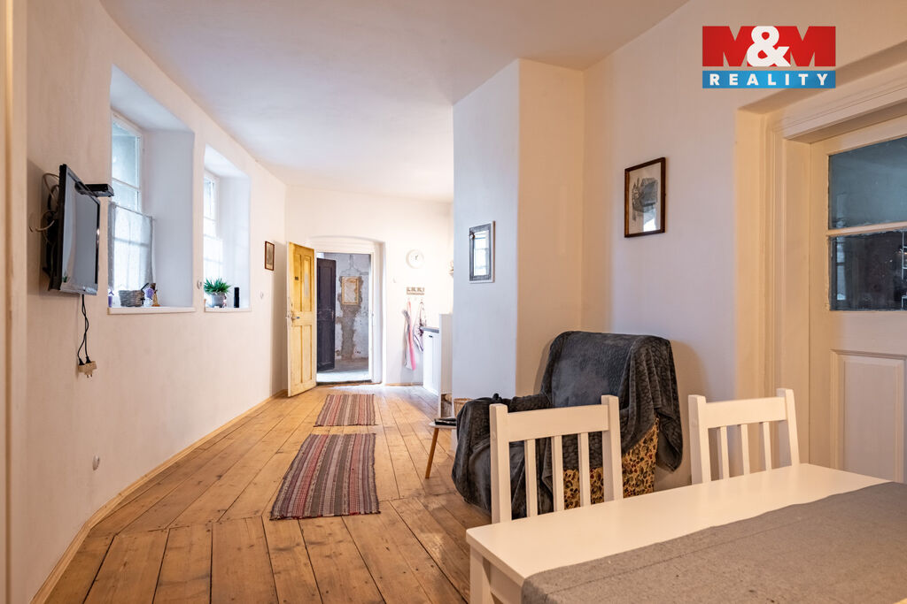 Nabízíme k prodeji unikátní historický dům v centru městečka Švihov, o celkové výměře 378 m². Tato nemovitost s částečně dokončenou rekonstrukcí nabízí široké možnosti využití, od bydlení až po zřízení penzionu. V přízemí se nachází obchůdek s výlohou a vstupem z ulice o ploše 42 m² a navazující byt 1+1 o výměře 50 m², před rekonstrukcí. Dále zde najdeme uzavřený průjezd s možností parkování pro 2 vozidla a byt se 4 pokoji a sociálním zařízením o velikosti 62 m². V patře je 7 částečně zařízených obytných místností, kuchyň, spižírna, sociální zařízení a pavlač s částečným výhledem na vodní hrad Švihov, známý z pohádky Tři oříšky pro Popelku. Rozměrná půda je vhodná pro obytnou vestavbu. Dům je částečně podsklepen. Na dvoře je k dispozici zděné stání pro 2 automobily a kolna. Okrasná zahrada o 207 m² je vybavena zapuštěným bazénem. Nemovitost je napojena na zemní plyn, veřejnou kanalizaci a vodovod. V obci veškerá občanská vybavenost.