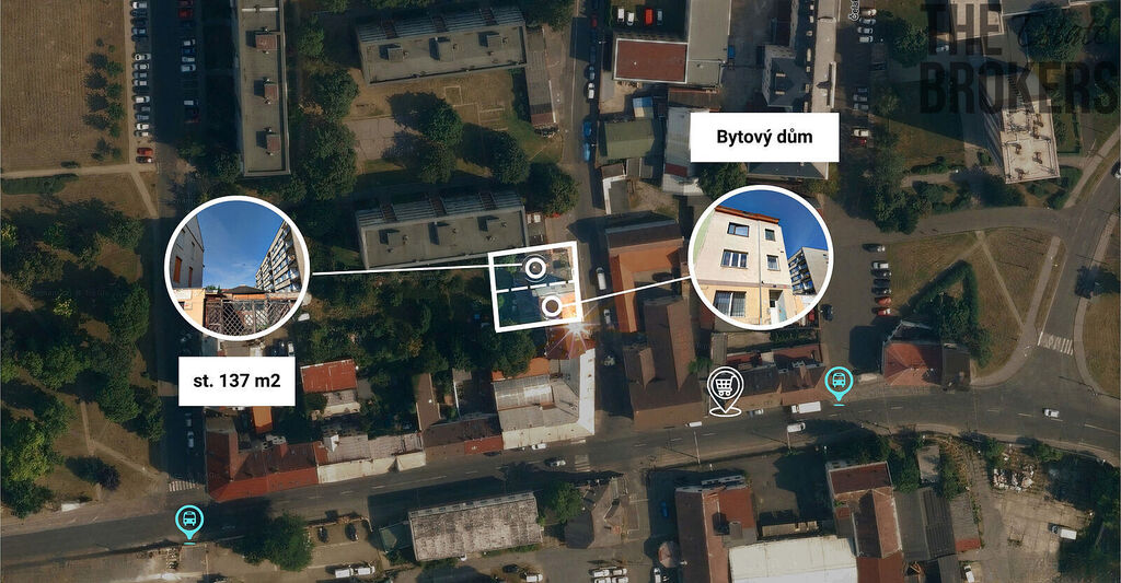 Bytový dům na každém patře disponuje jednou bytovou jednotkou (1+0, 2+1, 2+1 a 2+1), které jsou pronajaté. Prodává se i se stavebním pozemkem (138 m²), na kterém je jednopodlažní budova, která je momentálně pronajatá. V zadní části přízemí je prostor na vybudování ateliéru. Sklepení je pod celým domem je plně pochozí a nabízí možnost prostory využít. Dům jednou stranou přiléhá k sousednímu obytnému domu, druhou stranou sousedí s pozemkem. Dle územního plánu je možné zde postavit další bytový dům. Objekt je napojen na veřejný vodovod a kanalizaci. Vytápění je zajištěno elektrickými přímotopy.