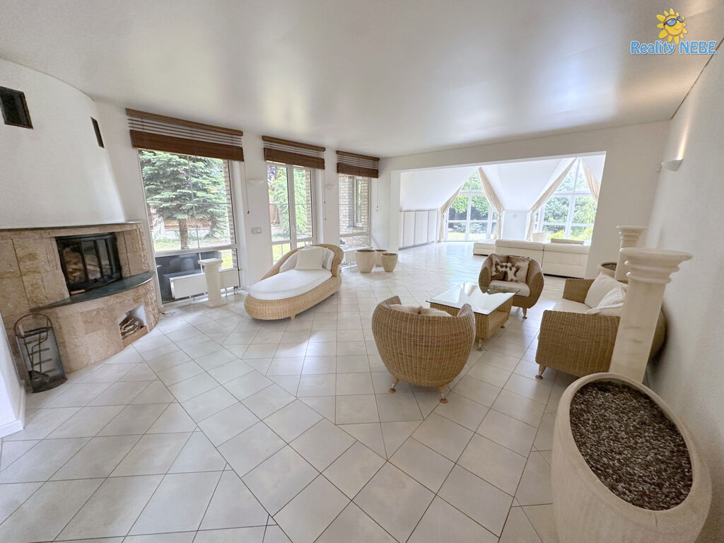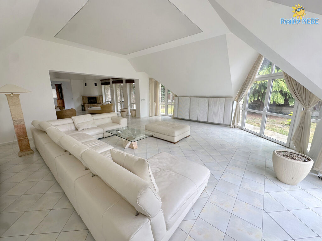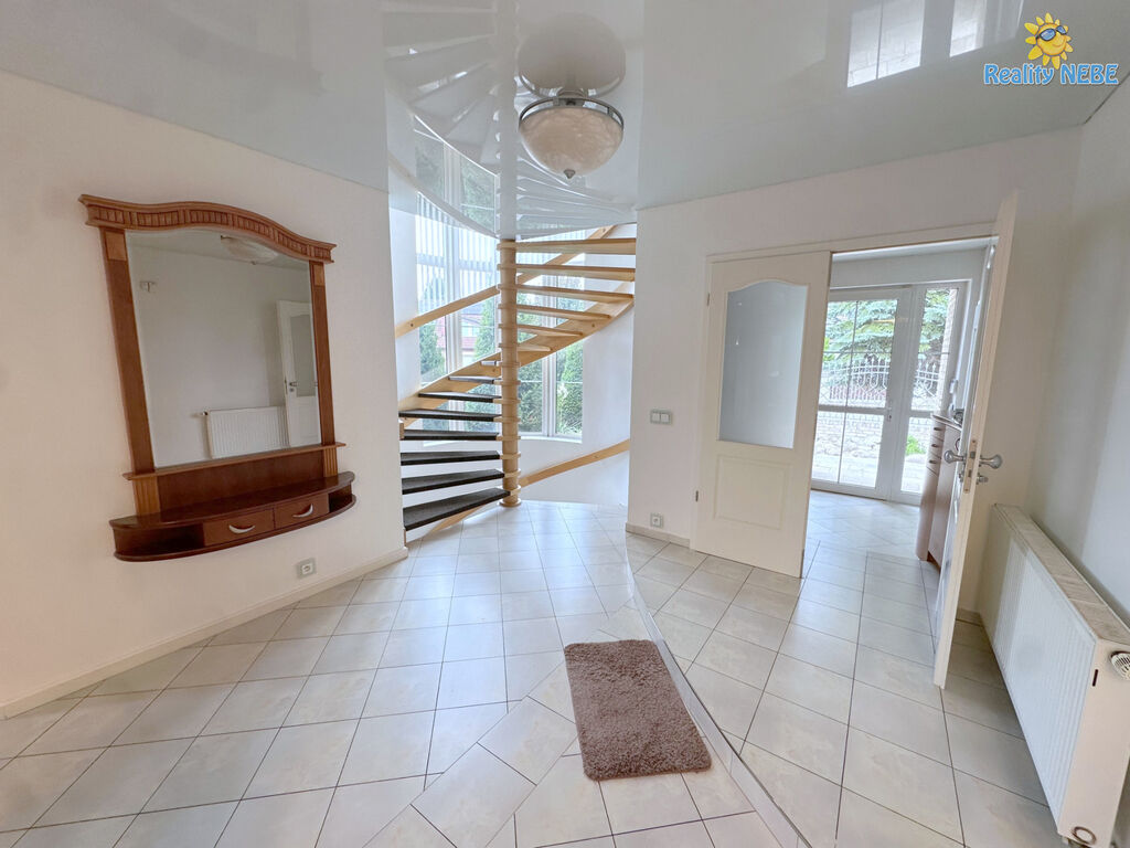 Nabízíme k dlouhodobému pronájmu rodinný dům se zahradou v Praze - Benicích. Třípodlažní vila z roku 2000 o vnitřní podlahové ploše 427m2 s dvojgaráží 39m2, náleží k ní zahrada o velikosti 580m2. Dispozice je atypická, dominantou 1NP je obývací pokoj s krbem a výstupy do zahrady, jídelna, kompletně zařízená kuchyně, koupelna, špajz a spousta úložných prostor. Také dvojgaráž přístupná ze vstupní chodby. 2NP skýtá 3 ložnice (2 s výstupem na balkon), 2 koupelny s WC, 2x šatna. 1PP je velmi prostorné, celkem 85m2 rozděleno do spousty úložných a technických prostor, je zde další koupelna s WC a sauna. Dům je napojen na všechny inženýrské sítě, vlastní ústřední vytápění tepelným čerpadlem. Obytné místnosti jsou orientovány na Jižní a Jihozápadní stranu.
