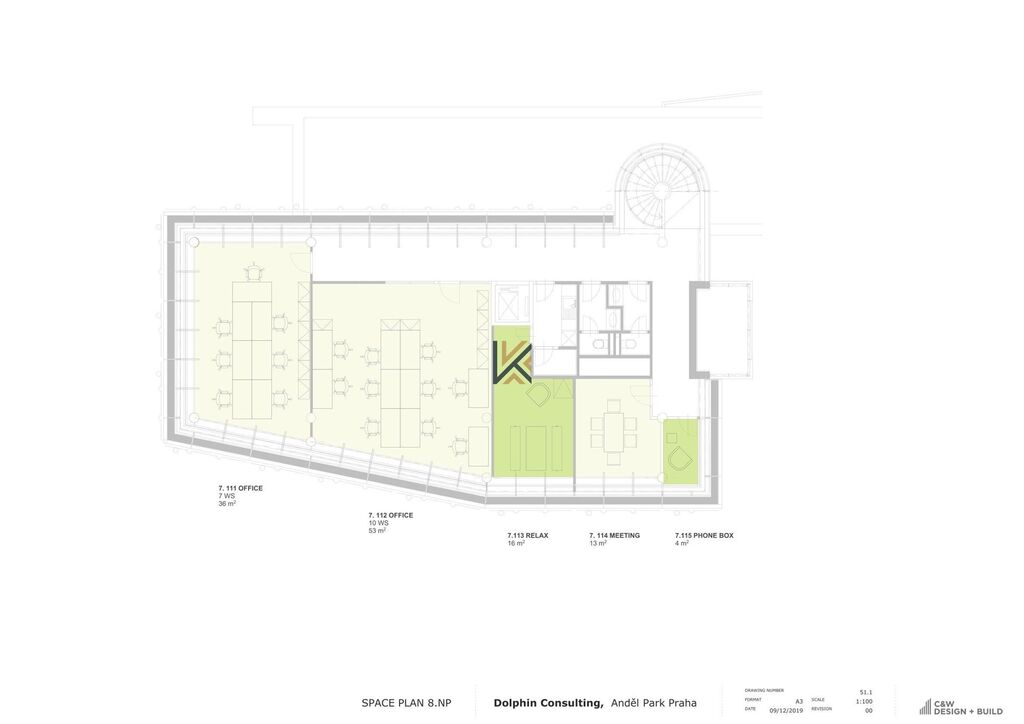 Bez provize! Nabízíme k pronájmu světlé a reprezentativní kanceláře o celkové ploše 208 m² v posledním patře prestižní administrativní budovy Anděl Park v oblíbené lokalitě Praha 5 – Anděl.