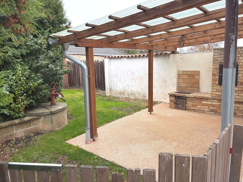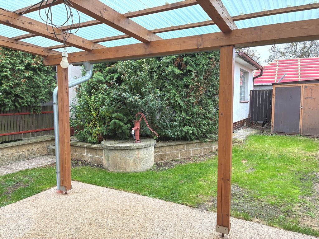 Dům je po kompletní rekonstrukci, je připojený na obecní vodovod i kanalizaci, vytápění je řešeno ústředním topením na tuhá paliva, ohřev TUV je elektrickým boilerem, na zahradě je studna na zalévání. K domu náleží oplocený pozemek o výměře 455 m2, na zahradě je k dispozici terasa, dále krytá pergola s posezením a venkovním krbem, menší garáž (nelze parkovat auto) a dílna. Odvoz odpadu 1x ročně 1.000 Kč.