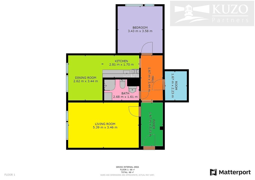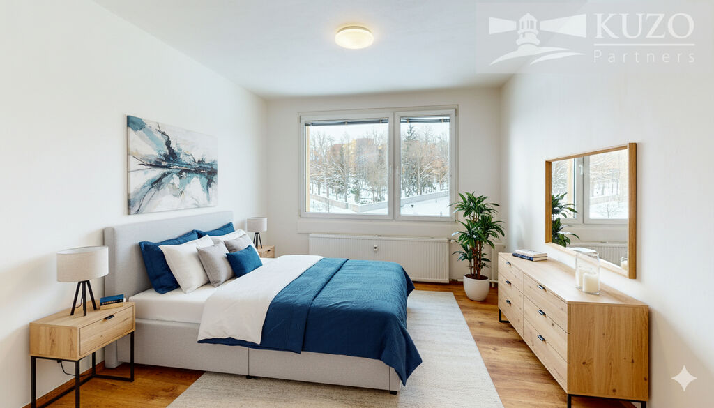 Velkorysý prostor a dispozice: Skutečná plocha 68 m² nabízí dostatek místa. Dispozice 2+1 je charakteristická nadměrnou kuchyní s prostornou jídelnou, díky které se prostor bytu jeví téměř jako 3+kk. K dispozici jsou dvě samostatné neprůchozí místnosti pro Vaše soukromí (ložnice a obývací pokoj).