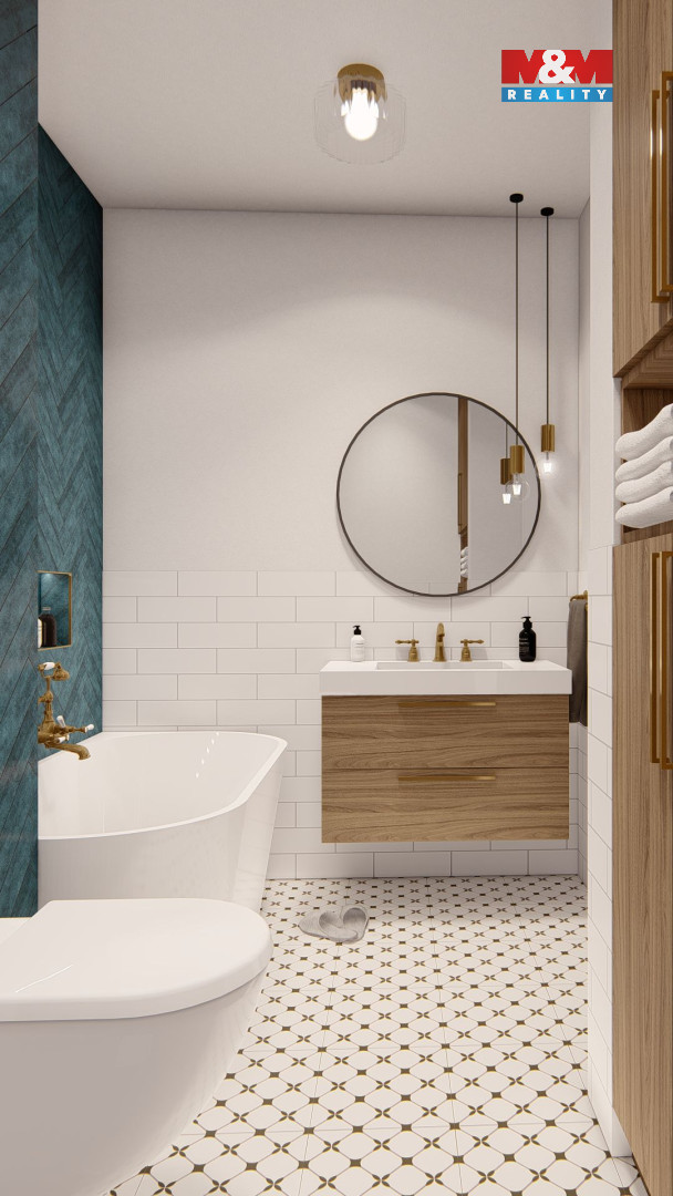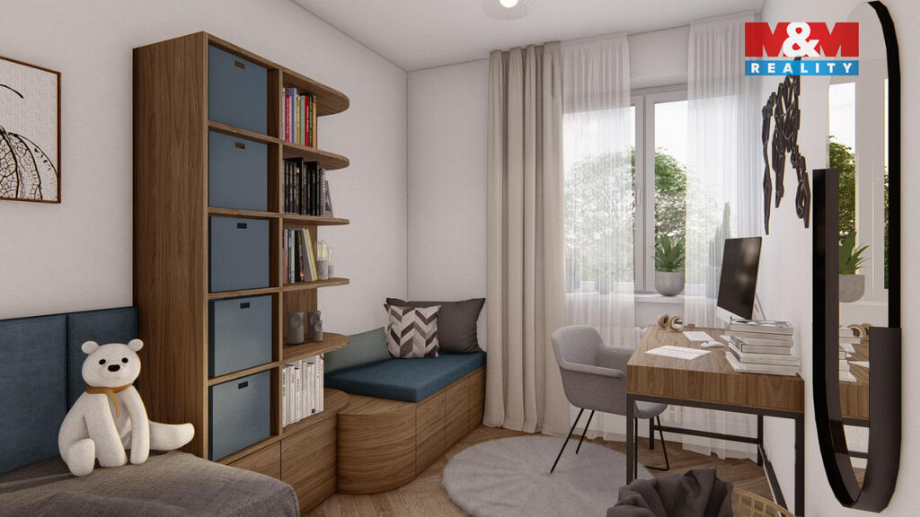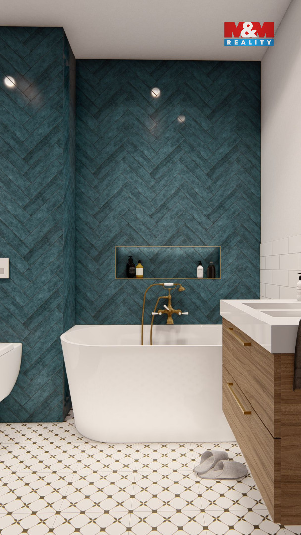Součástí bude kuchyňská linka na míru se spotřebiči Gorenje, vestavěná lavice s úložným prostorem a knihovna navazující na kuchyň. V předsíni najdete vestavěnou skříň s pračkou se sušičkou, koupelna bude dle vizualizace. Voděodolné podlahy v parketovém vzoru dotvářejí atmosféru.