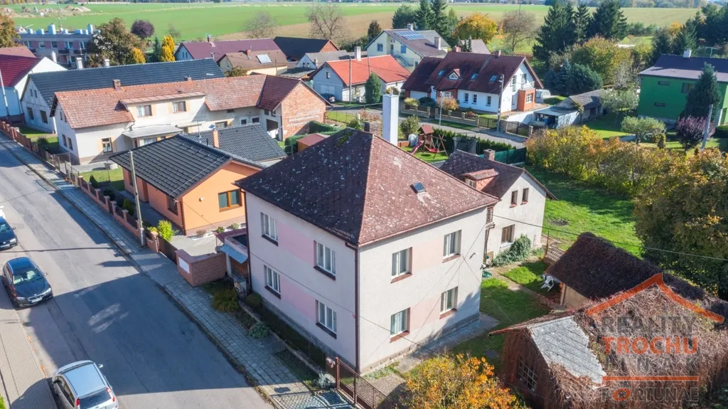 Nabízíme k prodeji rodinný dům, nacházející se v klidné části obce Skalice, k.ú. Skalice u Smiřic. Tento patrový objekt obsahuje dvě samostatně uzamykatelné bytové jednotky, každá v jednom NP. Společný vstup schodištěm. Zastavěná plocha 190 m², užitná plocha 127 m², celková plocha(včetně příslušenství) 163 m2, plocha pozemku 853 m².