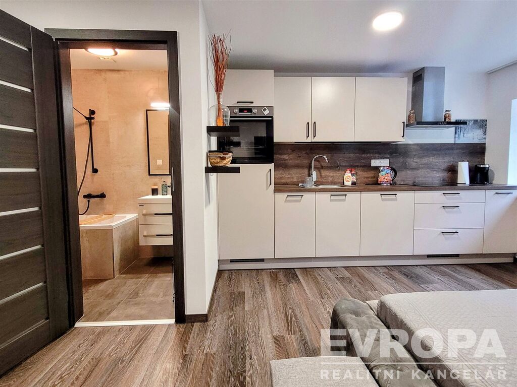 Pronajímá se kompletně zařízený a zařízený (Kuchyňská linka s vestavěnými spotřebiči, jídelní stůl, židle, manželská postel, konferenční stolek, TV)