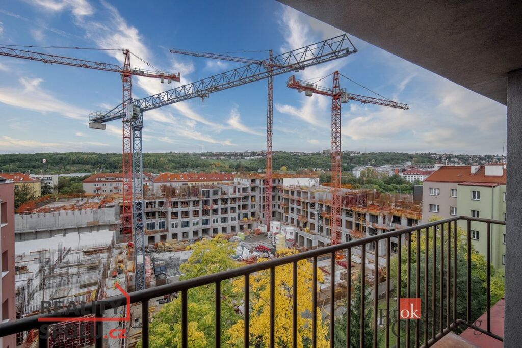 Z obývacího pokoje s kuchyňským koutem je vstup na prostornou lodžii s výhledem do vnitrobloku, kde v současnosti probíhá dokončovací fáze stavby, která bude hotová během několika měsíců – poté vás čeká klidné a upravené prostředí s novým projektem na který bude radost se dívat, ale který vám nebude bránit ve výhledu na protější zelené kopce.