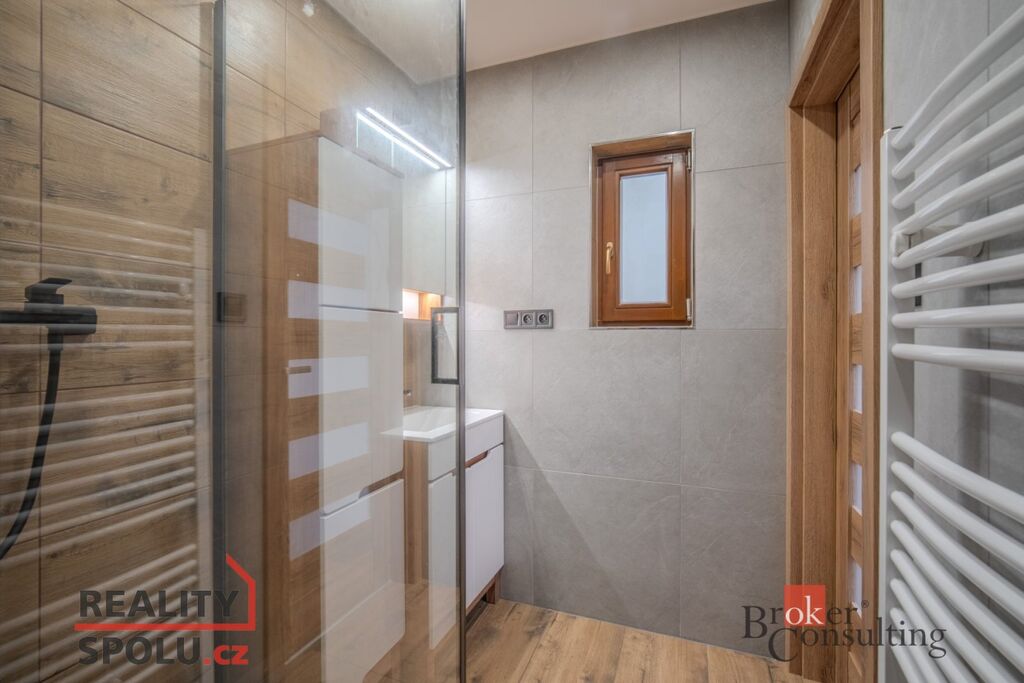 Byt je v osobním vlastnictví a prošel kompletní rekonstrukcí. Má nová dřevěná okna včetně střešních, díky kterým působí celý prostor vzdušně a prostorně. Samozřejmostí jsou kompletní nové rozvody, dřevěné podlahy i dveře, kuchyňská linka na míru a stylová a moderní koupelna. Stačí se jen nastěhovat.
