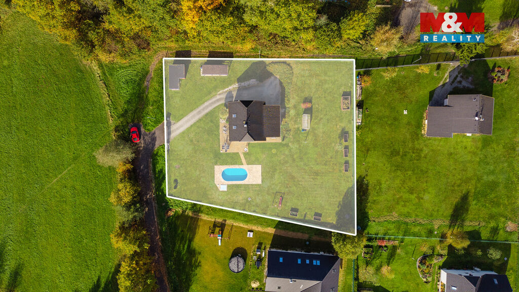 Benefitem je velká zahrada, bazén, klid a příroda.
