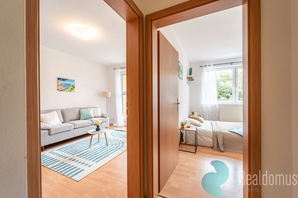 Byt tvoří vstupní předsíň, ze které je samostatný vstup do obývacího pokoje s kuchyňským koutem, ložnice, koupelny, odděleného WC a komory. K bytu náleží prostorná lodžie, ideální pro odpočinek či posezení u kávy, a také vlastní parkovací stání přímo před domem, které je již zahrnuto v ceně.