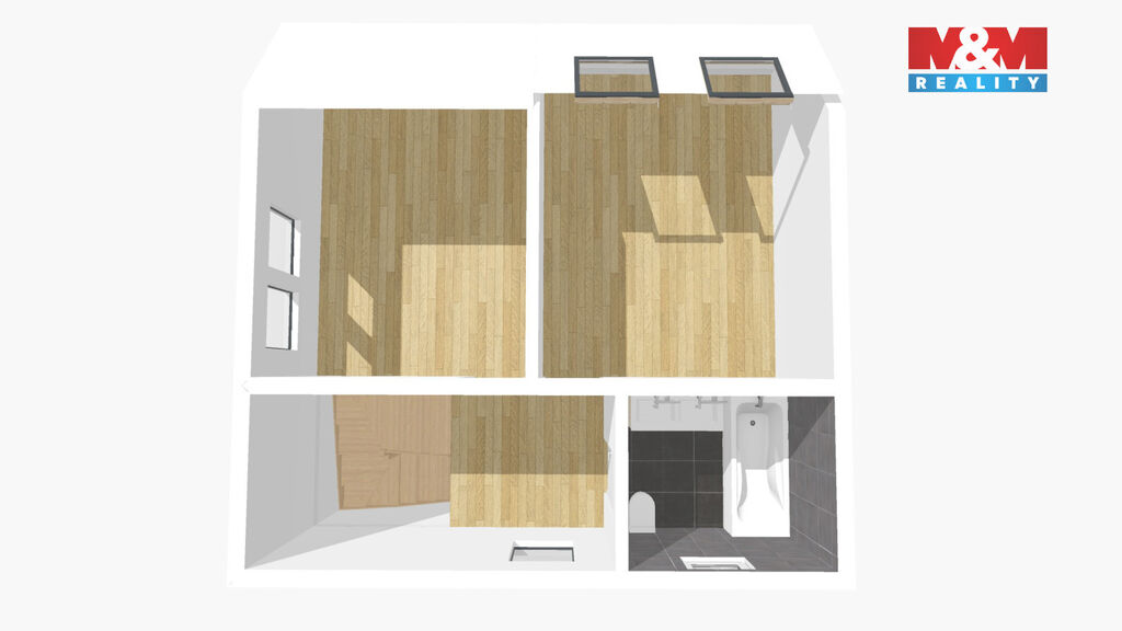 V I. NP se nachází vstupní chodba, technická místnost s WC a prostorný obývací pokoj s místem pro kuchyňský kout, v II. NP jsou pak umístěny dvě ložnice a koupelna s vanou a WC. Tato nemovitost je ideální volbou pro ty, kteří hledají útulný a zároveň prakticky řešený domov v kvalitě řadového rodinného domu. K bytu náleží k užívání parkovací místo zdarma.