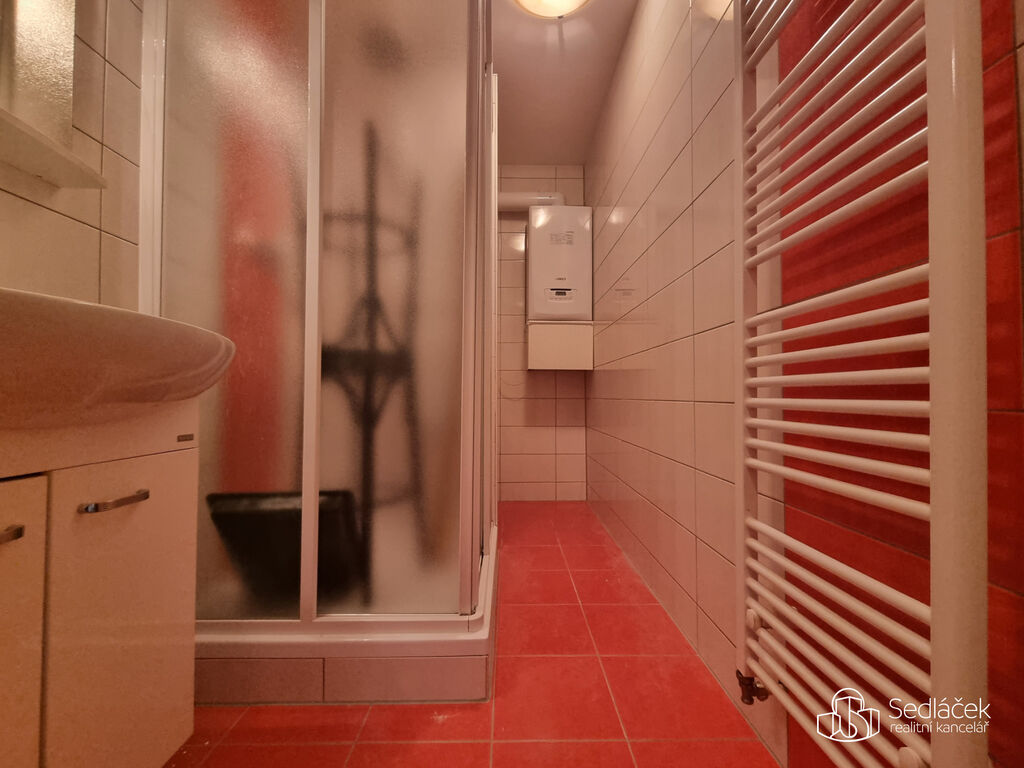 Koupelna je světlá a praktická, se sprchovým koutem, vytápění zajišťuje vlastní plynový kotel.