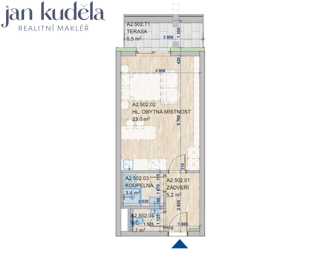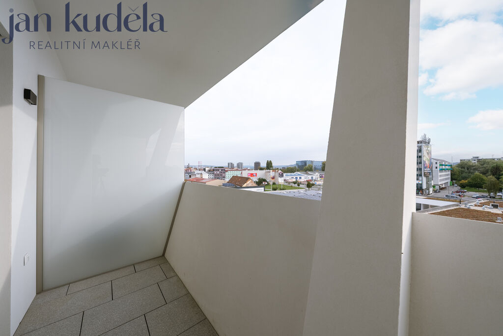 Nabízíme k pronájmu nový a světlý byt o dispozici 1+kk o celkové podlahové ploše 38,8 m² včetně terasy 5,5 m², umístěný v 5. nadzemním podlaží bytového domu Meridiem. K bytu náleží také prostorný sklep.