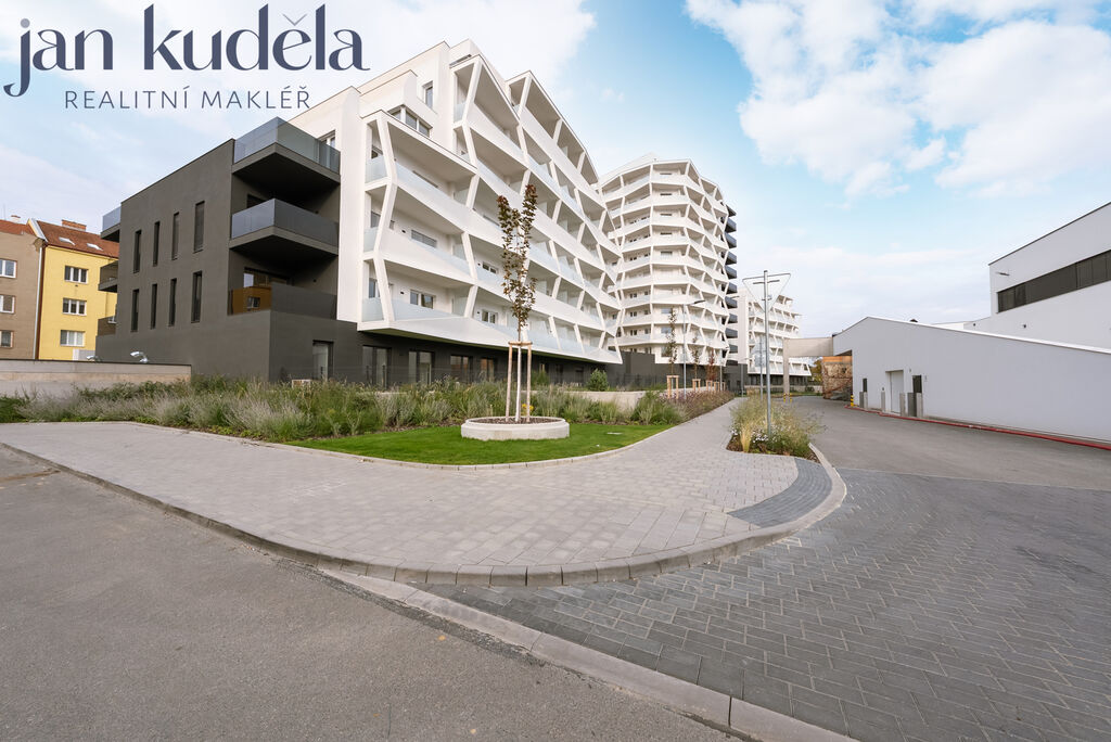 Parkování je možné v okolních ulicích bez modré zóny. V blízkosti se nachází veškerá občanská vybavenost – supermarket Albert (200 m), zastávka MHD (200 m) s dojezdem do centra za 7 minut, cyklostezka podél řeky Svratky (5 minut pěšky), sportoviště Vodařská a Komec (10 minut) a dálnice D1 (5 minut).