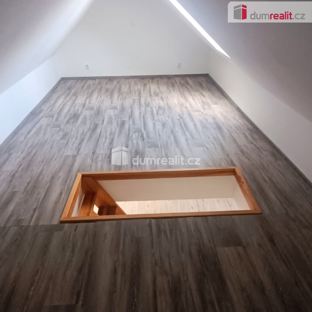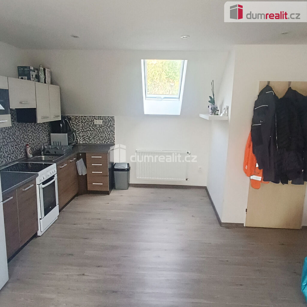 Dumrealit.cz Vám zprostředkuje pronájem bytové jednotky o dispozici 1+1, typu mezonet.. Byt sestává z prostorné místnosti, jež otevřeně propojuje kuchyňskou a obývací část. Kuchyňská linka je v základním vybavení. Dřevěné schodiště vede do patra, kde je v podkroví místnost pro ložnici. Zděné jádro je vybaveno sprchovým koutem, toaletou a dalším příslušenstvím.