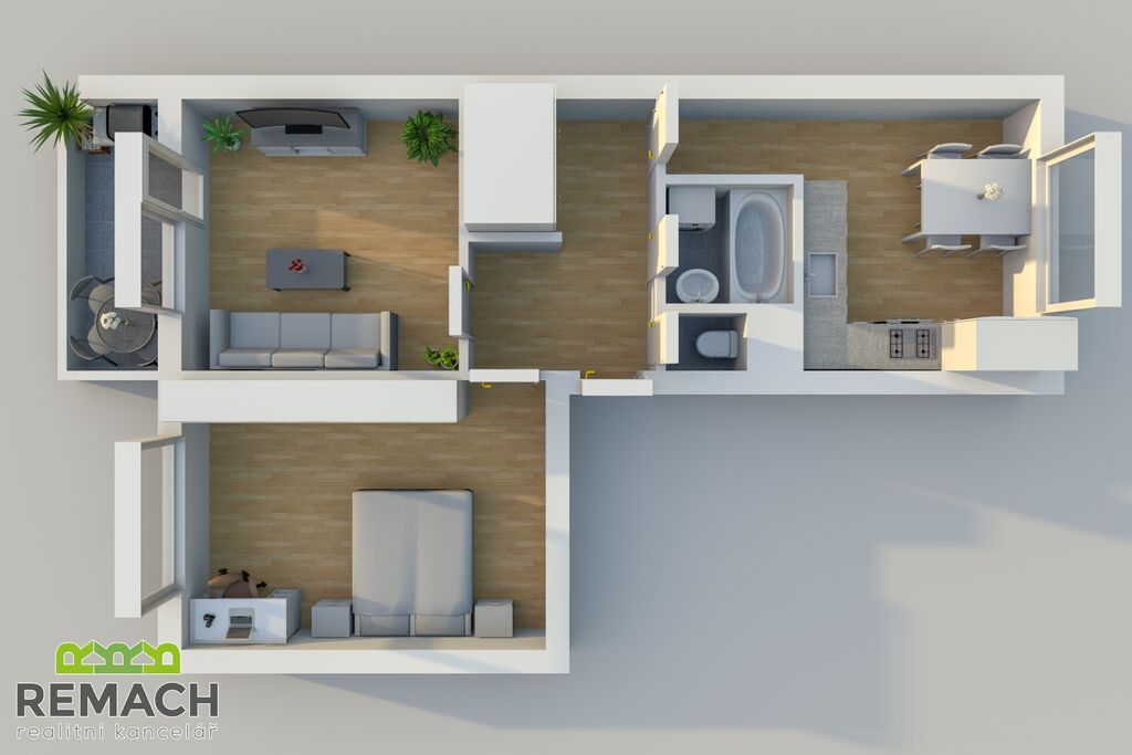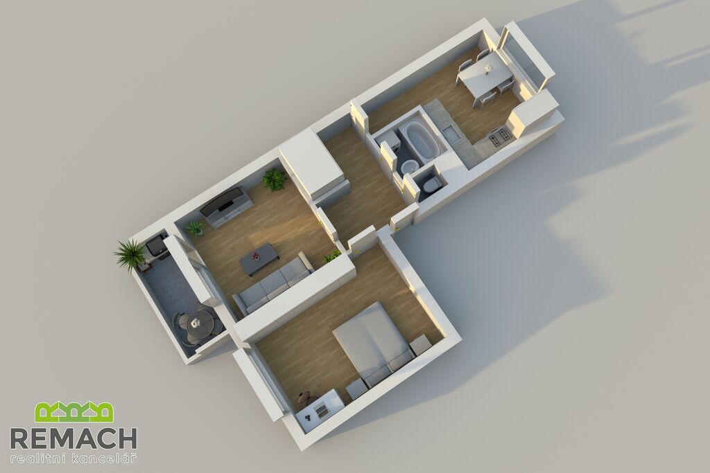 Dva neprůchozí pokoje, kdy z jednoho máte vstup na zasklený balkon, s orientací na jižní stranu.