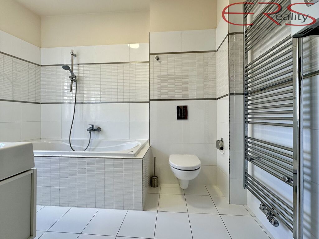 Koupelna: vana dost velká na to, abyste si v ní připadali jako ve wellness (dokud nezjistíte, že jste doma). Pračka už čeká, až jí začnete házet ponožky.