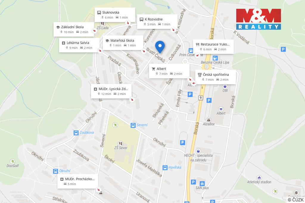 V okolí je kompletní občanská vybavenost – škola, školka, obchody, lékař i zastávky MHD.