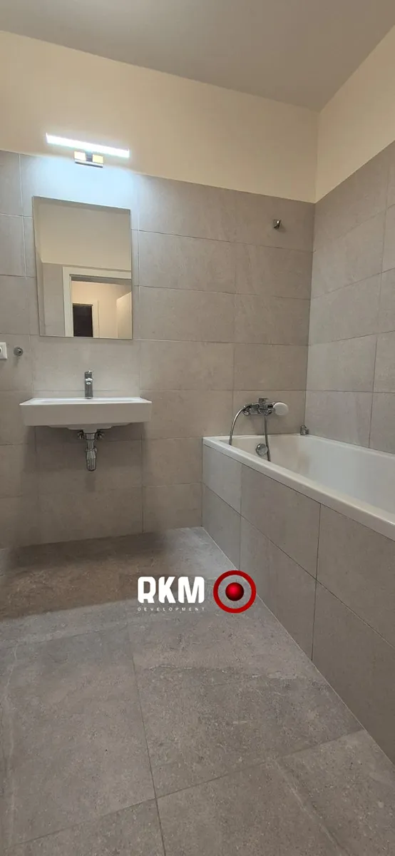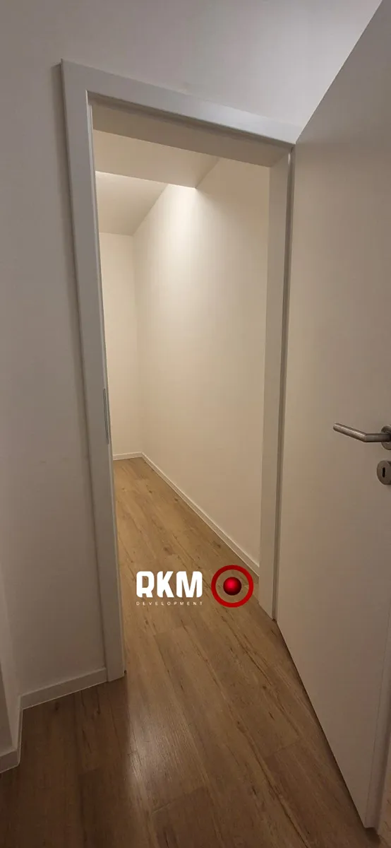 Byt o celkové ploše 86,4m2 je situovaný v 4.NP v nově vybudovaném bytovém domě o čtrnácti jednotkách. Dispozice bytu: chodba 12,1 m2, pokoj 15,1 m2, pokoj 14,4 m2, koupelna 4,4 m2, WC 1,3m2, pokoj + kk 38,9 m2, sklad 3,6 m2. Součástí bytu je i sklepní kóje.