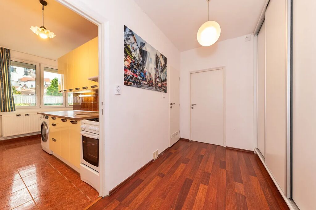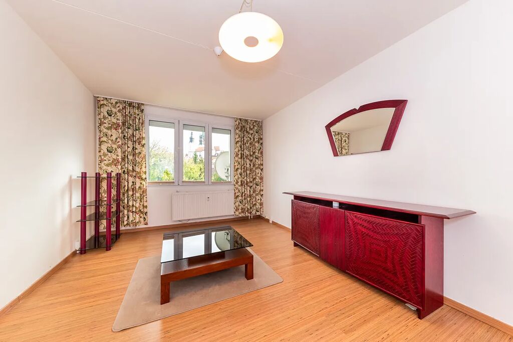 Byt se nachází ve třetím patře čtyřpodlažního domu a je částečně vybaven. Dálkové topení, dálkový ohřev vody.