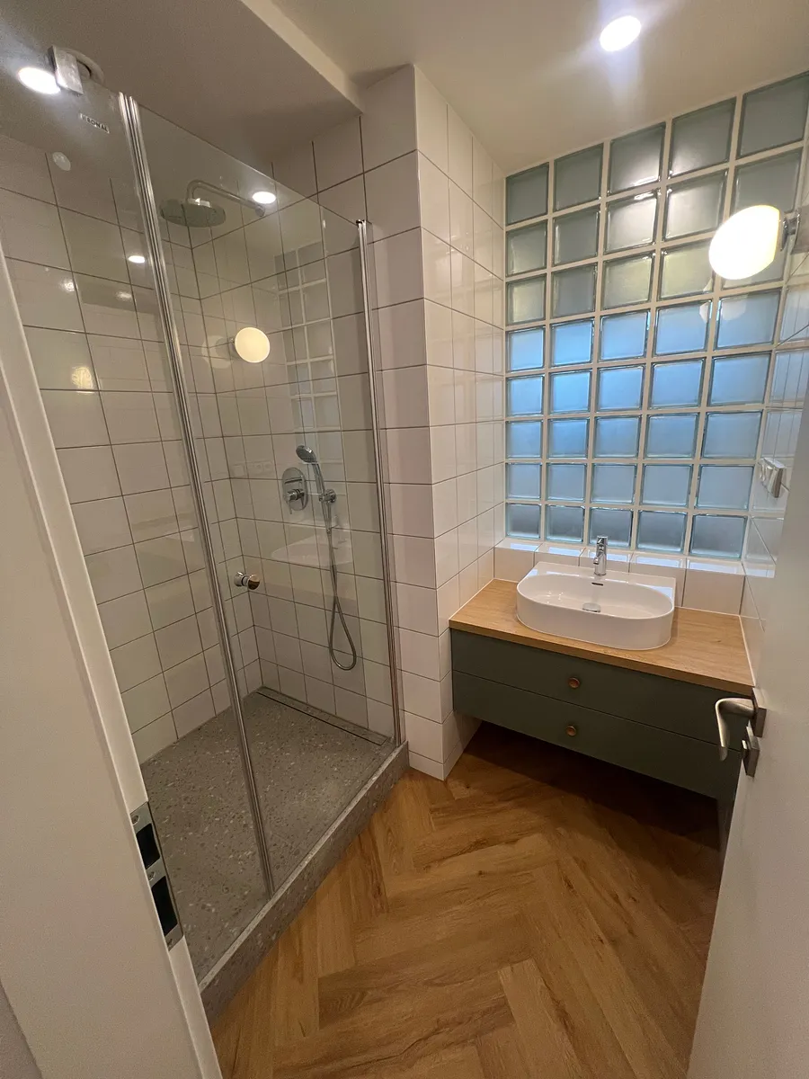 Nabízíme Vám k dlouhodobému pronájmu luxusní nový, ještě nebydlený byt 2+kk s lodžií, v 2. patře cihlového domu, obklopeného krásnou zahradou v klidné lokalitě Radotína s bezproblémovým parkováním i výbornou dopravní dostupností do centra. Byt prošel kompletní rekonstrukcí, má k dispozici novou kuchyňskou linku s indukční varnou deskou, elektrickou troubou, lednicí s mrazákem, mikrovlnkou a myčkou, v koupelně sprchový kout, samostatné WC. Světlý obývací pokoj s lodžií a okny na sever a lodžií na jih. Na všech oknech žaluzie. Ústřední vytápění, ohřev vody boilerem. Dostatek nových vestavných skříní jak v ložnici, tak v předsíni. K bytu náleží sklep. Výborná dopravní dostupnost. Zastávka busu i vlaku 5 min od domu dojezd na metro Smíchovské nádraží do 10 min. Veškerá občanská vybavenost v přímém okolí. Billa a Penny 3 min od domu. Volné ihned. Určeno k dlouhodobému pronájmu ideálně pro pár nekuřáků bez domácích mazlíčků. Doporučujeme prohlídku.