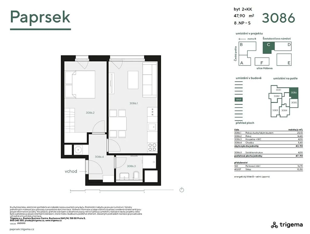 Nabízíme Vám jedinečnou nabídku pronájmu moderního bytu 2+kk nacházející se v rezidenčním komplexu PAPRSEK – přímo u stanice metra B – Stodůlky. Tento byt je umístěn v 8. NP a s užitnou plochou bytu 47,9 m2 - je ideální pro pár nebo jednotlivce, kteří ocení luxusní a moderní design.