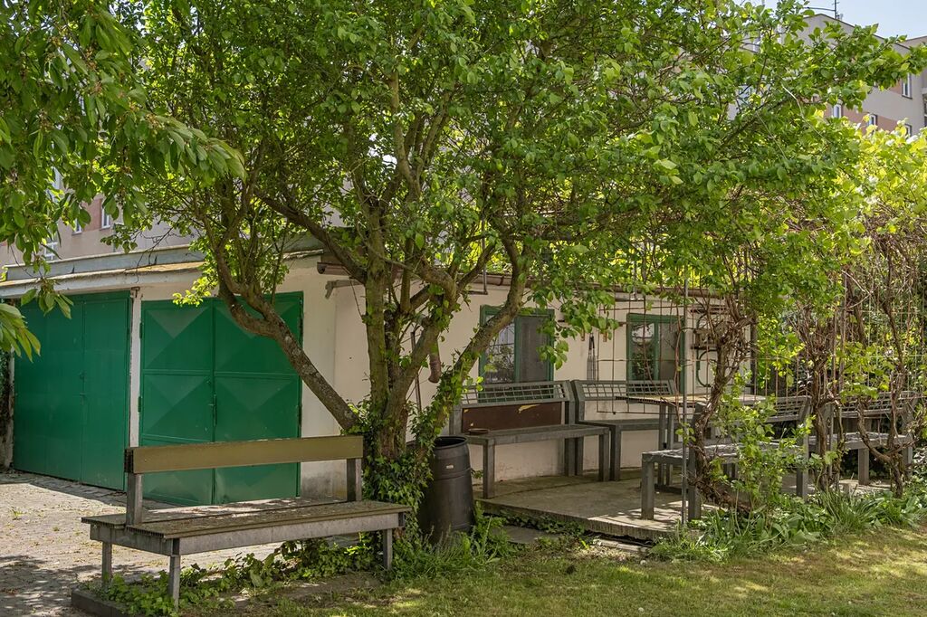 Na pozemku se nachází 2 zděné garáže (19 m² a 20 m²) s příjezdem z ulice Kyjevská. Další přístup na pozemek je zajištěn brankou z ulice Strnadova.