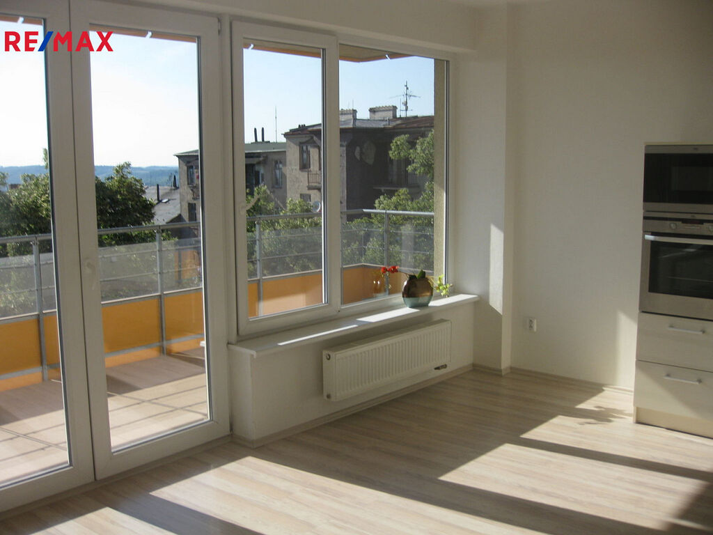 Ve výhradním zastoupení majitele nabízíme k pronájmu nadstandartní byt 2+kk s velkým balkonem o celkové velikosti 76 m² (balkon má 17,5 m²) v komplexu Atrium na ul. Michálkovická na Slezské Ostravě. Byt se nachází ve třetím z 6 podlaží. Byt má novou kuchyňskou linku s vestavěnými spotřebiči, koupelnu se sprchovým koutem, WC samostatné. Velmi prostorná chodba. V celém bytě jsou plovoucí podlahy. Z obývacího pokoje je výhled na celou Ostravu, ložnice je orientována s výhledem do dvora. K bytu náleží sklep.