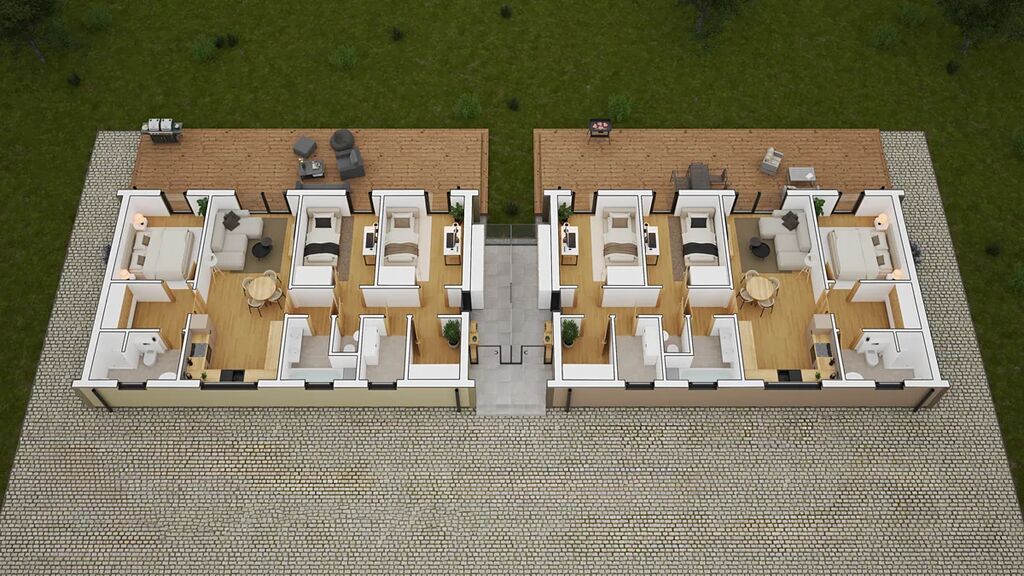 Projekt Domy Mcely nabízí dům se dvěma samostatnými bytovými jednotkami – moderní, úsporné a mimořádně výhodné bydlení v krásné přírodě, jen pár minut od Nymburka a dálnice D11.