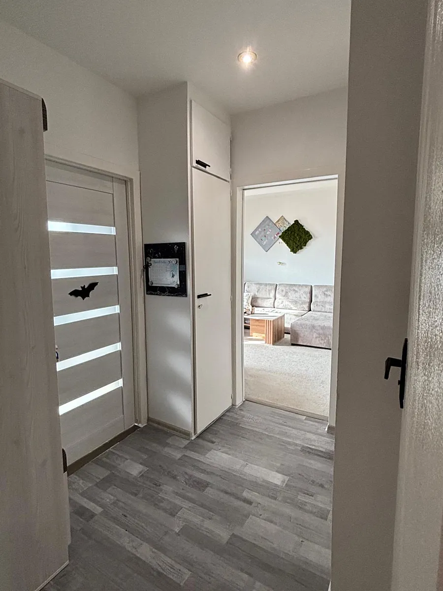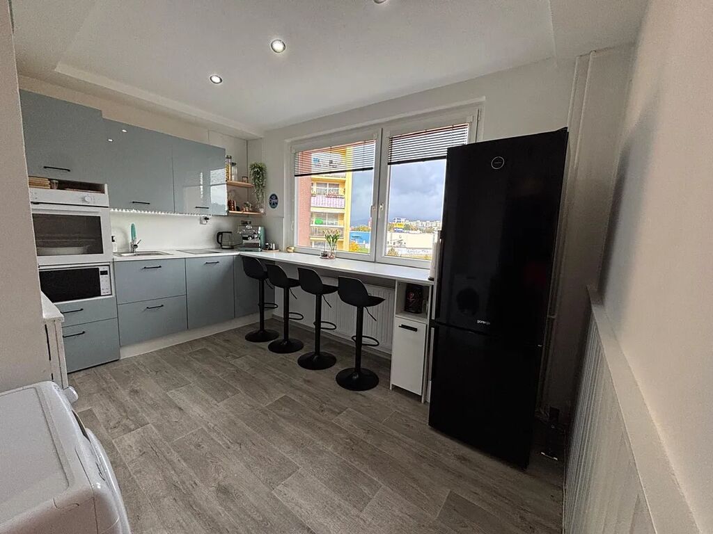 Byt má zděné jádro, novou kuchyňskou linku se spotřebiči, které jsou součástí prodeje. Jedná se o novou el. troubu, myčku zn. Candy, ledničku a pračku. Byt má také koupelnu po rekonstrukci a WC zvlášt. Ve většině místností jsou nové podlahy a koberce, takže byt působí čistě a upraveně. Součástí bytu je i zasklený balkon s pěkným výhledem a díky položenému koberci lze balkón využívat jako zimní zahradu. Panelový dům prošel také revitalizací.