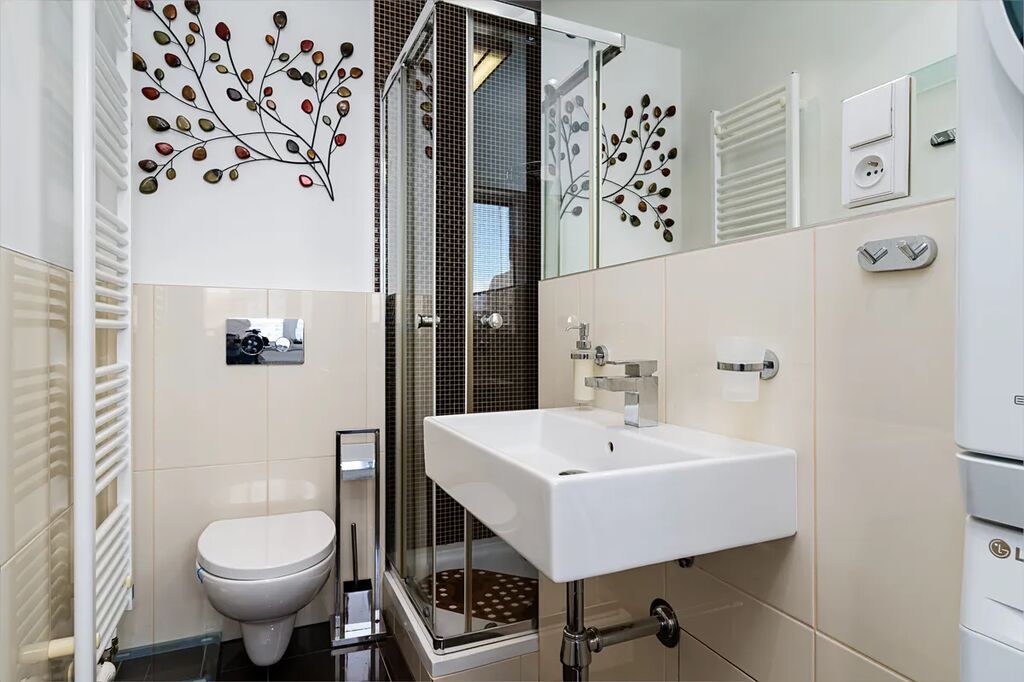 Byt je vybaven klimatizační jednotkou a luxusní německou kuchyňskou linkou vyrobenou na míru, doplněnou kvalitní pracovní deskou a vestavěnými spotřebiči značky Electrolux.