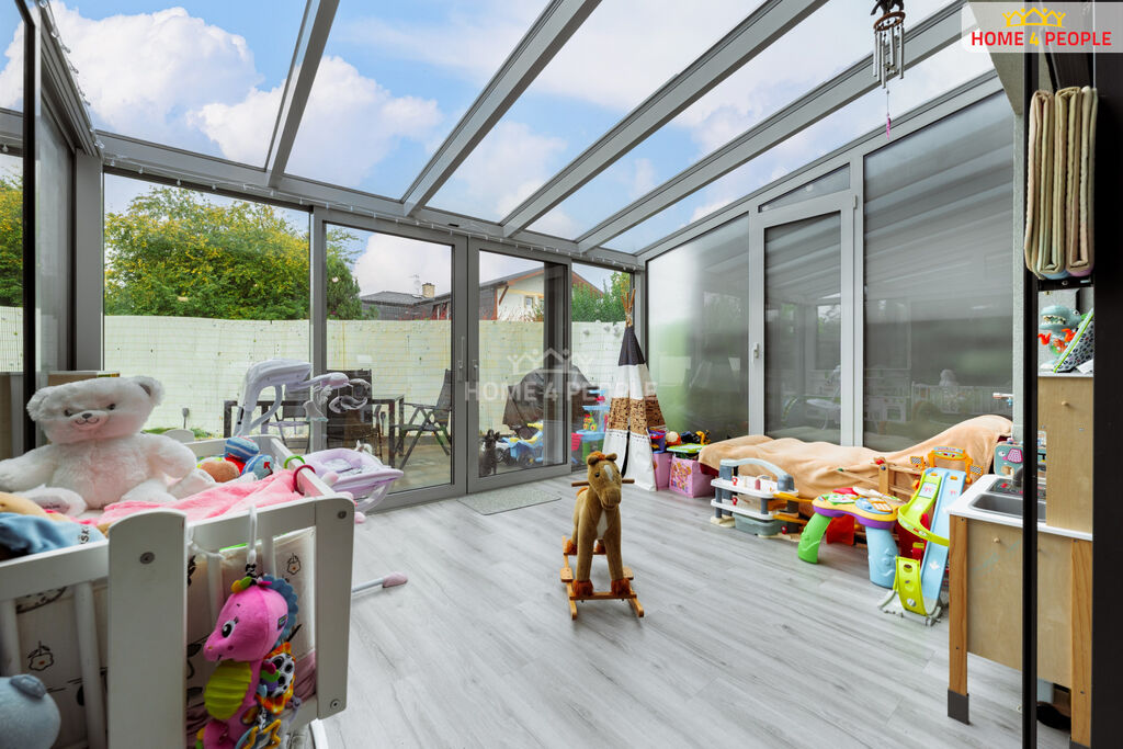 Zprostředkujeme Vám ve výhradním zastoupení, prodej krásného prostorného bytu o velikosti 125 m² rozkládající se na třech patrech což zaručuje soukromí (kolaudovaný 2019) o dispozici 4+kk + vytápěná zimní zahrada s trojskly 14,5m², která je celoročně obyvatelná + zahrada 153 m² kde můžete grilovat či může být bazén pro děti, na nádherném místě v rezidenční části Praha 9 - Koloděje. K jednotce náleží dle listu vlastnictví garáž o zastavěné ploše 19 m² a skladová místnost 3 m² u domu a jedno venkovní parkovací stání. Na všech oknech včetně zimní zahrady jsou sítě proti hmyzu, k dispozici je systém Jablotron a chytrá domácnost, která se ovládá přes telefon s vysokorychlostním internetem zdarma. Dům se prodává včetně vybavení, tedy nic víc nepotřebujete a můžete se rovnou nastěhovat.