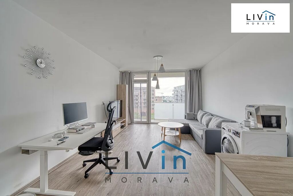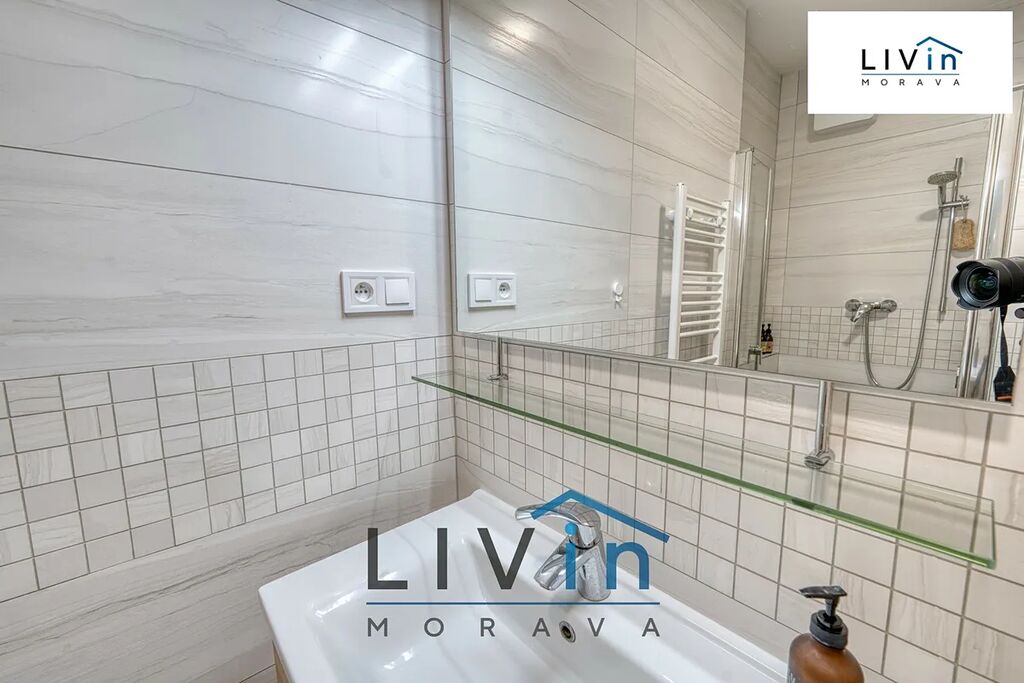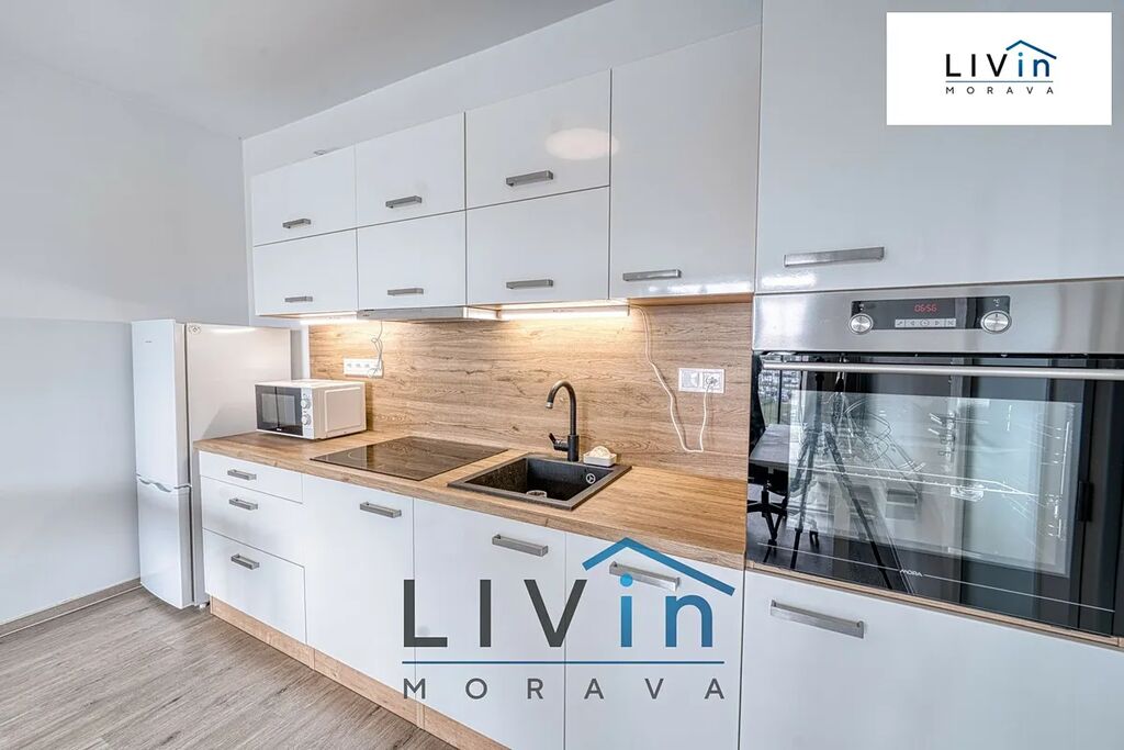 Součástí vybavení je moderní kuchyňská linka s vestavnými spotřebiči – myčkou nádobí, indukční varnou deskou s digestoří, horkovzdušnou troubou. V ložnici najdete prostornou vestavěnou skříň. Na chodbě je zrdcadlo a věšák. V koupelně sprchový kout a místo pro pračku (či set pračky a sušičky). V obou pokojích jsou záclony a zatmívací závěsy.