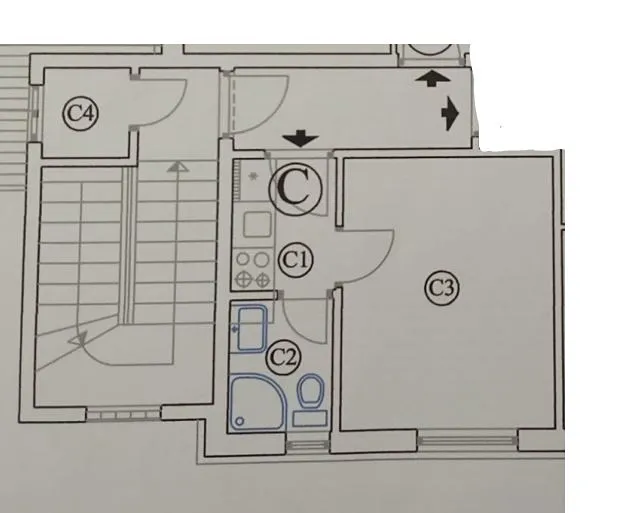 V přízemí je jeden větší apartmán, v prvním patře se celkem nachází tři menší byty se společnou chodbou.
