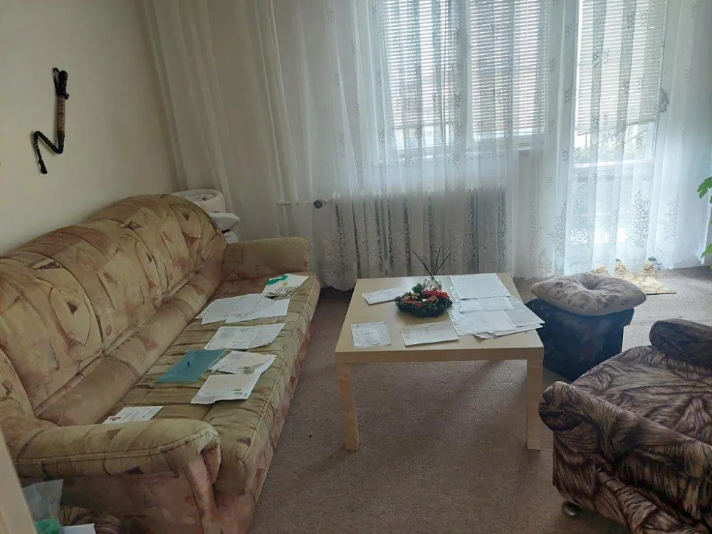 dřevěná zdvojená, dveře dřevěné do kovové zárubně, podlahy betonové s koberci, PVC nebo ker.