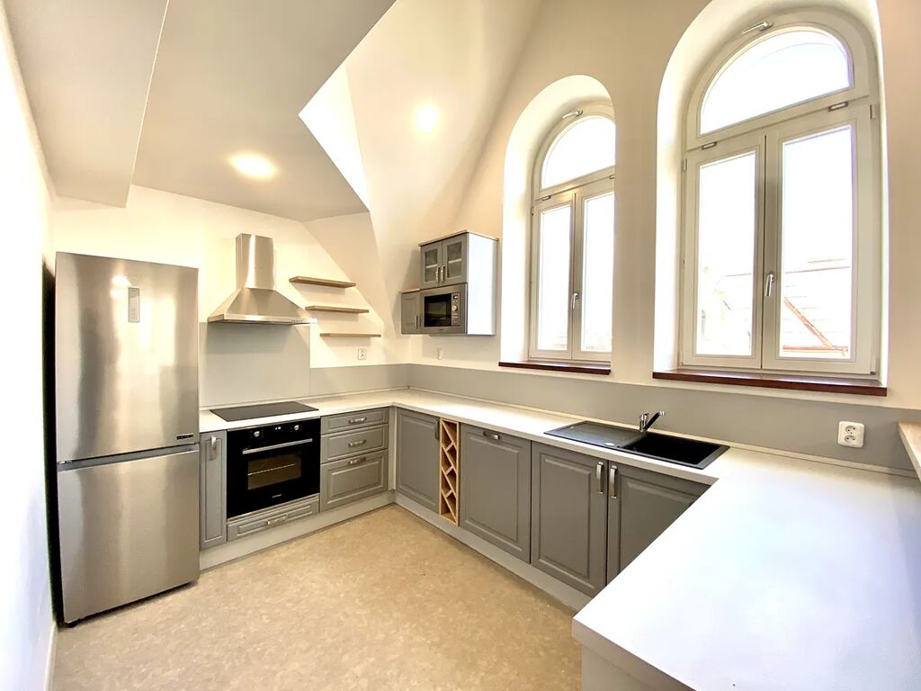Exkluzivně Vám nabízím pronájem kompletně před třemi roky rekonstruovaného mezonetového atypického bytu 2+kk (82 m2) ve 3. patře prvorepublikové vily v ulici J. K. Tyla. Vila je umístěna poblíž Šanovského parku.