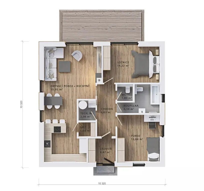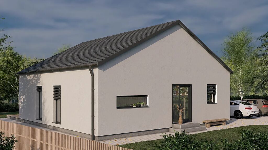 Nabízíme k prodeji nízkoenergetickou dřevostavbu typu bungalov Easy 100. Jedná se o čtvercový bungalov 3+kk o zastavěné ploše 107 m2 s užitnou plochou 87 m2.