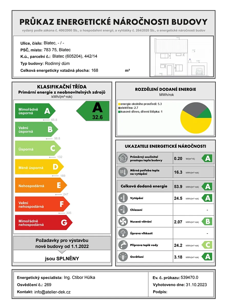 Energetická třída této nemovitosti je v nejvyšší kategorii PENB A, což předpokládá nízké náklady na bydlení a nejvyšší komfort.