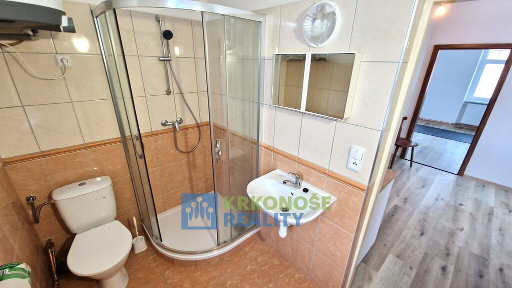 Nabízíme Pronájem bytové jednotky s dispozicí 2+1 v osobním vlastnictví, umístěná ve druhém nadzemním podlaží zděného domu v obci Kunčice nad Labem vzdálené 3 km od Vrchlabí. Výměra bytu je 47 m². K jednotce přísluší velký sklep (10 m²) a jedno parkovací stání na vlastním pozemku u domu. Dispozice: 2 obytné místnosti, kuchyň, koupelna s WC, umývadlem, a sprchovým koutem. Vytápění tepelným čerpadlem. Přímo před domem je autobusová zastávka. Veškerá infrastruktura města v dosahu několika minut ve 3 km vzdáleném Vrchlabí. Automobilka Škoda ve vzdálenosti 3km. Byt je po rekonstrukci v dobrém stavu. Nájemné Kč 10.000 + zálohy na inkasní služby Kč 5.000. Jedná se o nabídku dlouhodobého pronájmu (min. 1 rok) a to pouze serióznímu nájemci (NE exekuce, NE insolvence). Nastěhování možno ihned.