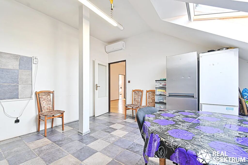 Podkroví dříve bylo využito jako kanceláře a dnes jako byt o dispozici 5+1 a výměře cca 140 m2. Ohřev teplé užitkové vody zajišťuje elektrický bojler. Každá místnost v podkroví má vlastní klimatizaci.