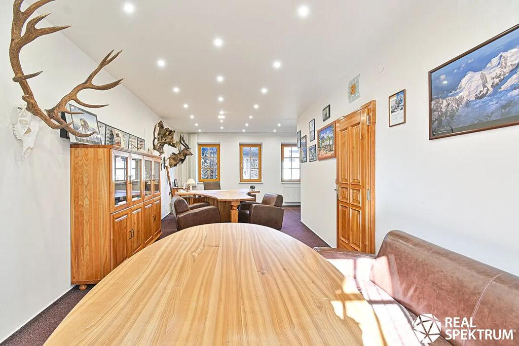 V chodbě Vás přivítá mramorová podlaha s vysokým leskem, ze které můžete směle vykročit do velkorysé kanceláře s okny na severovýchod a jihozápad, se stoly a knihovnou na míru.