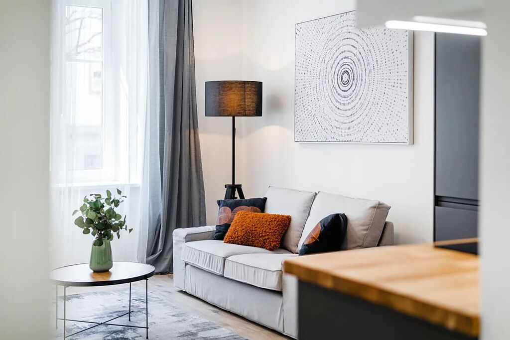 Dispozice bytu zahrnuje prostorný obývací pokoj s kuchyňským koutem a samostatná ložnice, koupelna se sprchovým koutem, samostatný toaleta, technická místnost a prostorná vstupní chodba. K bytu náleží sklepní kóje.