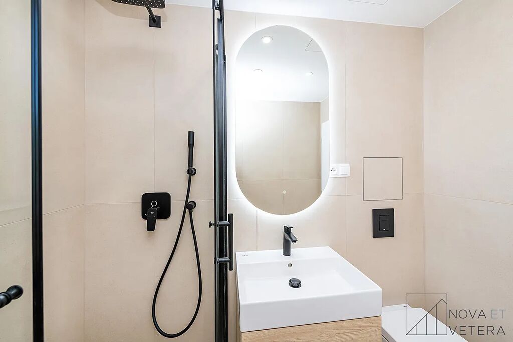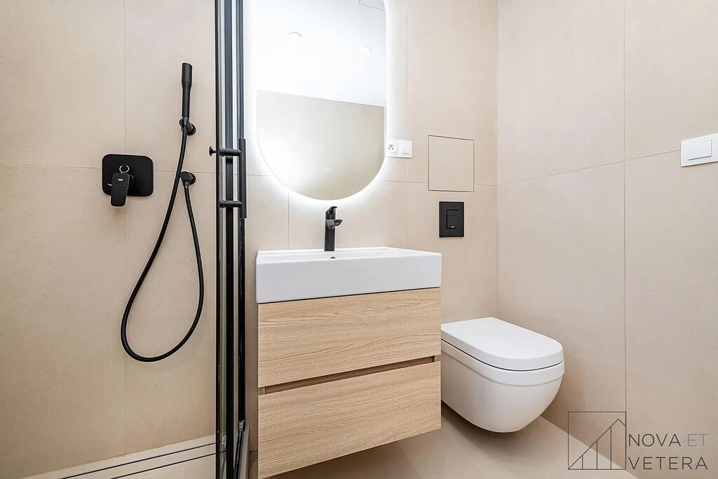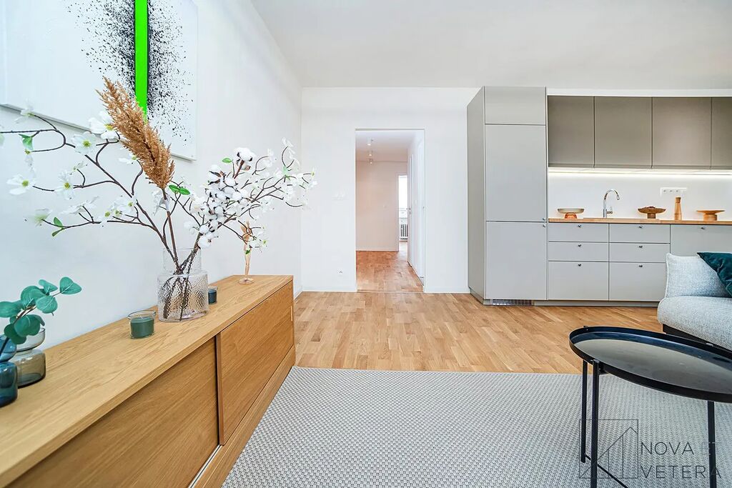 Byt prochází kompletní rekonstrukcí, která zahrnuje nové rozvody elektřiny, vody a odpadů, moderní podlahy, obklady a dlažbu italské značky Marazzi, koupelnu a toaletu se sanitou Grohe. Součástí je také nová kuchyňská linka vybavená vestavnými spotřebiči Gorenje s prodlouženou zárukou 5 let.