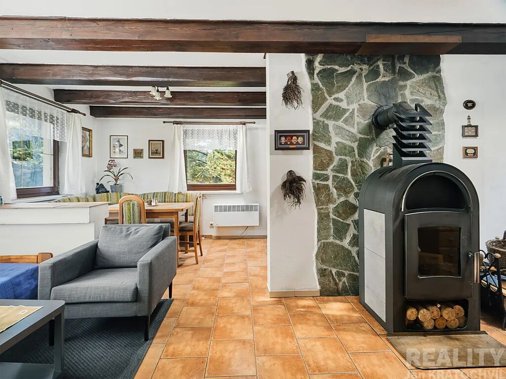 Prodej zděného rodinného domu s evidenčním číslem k celoročnímu obývání v obci Čísovice Bojov, Praha západ. Užitná plocha 130m2, obytná 80m2, terasa, garáž s dílnou, parkovací stání na pozemku. Pozemek celkem 2048m2, zahrada udržovaná, vzrostlé stromy, louka k možnému dalšímu využítí, např. domácí hospodářská zvířata, přístupová cesta. k domu i do garáže. Dům dispozične 4/kk, sklep 35m2 s technickou místností a sprchovým koutem, 1NP- chodba, pokoj, obývací pokoj s krbem s kuchyňským koutem a kuchyní, sporák na PB. Koupelna se sprchovým koutem, extra WC, schodiště. 2NP - 2x pokoj, extra WC. Podlahy dřevěné, dlažba, topení ústřední elektrický kotel, možno celý dům vytápět také centrálně i z krbových kamen, teplá voda bojler., elektřina 220V i 380V, klimatizace, okna VELUX dřevěná. Voda vlastní studna, odpad septik, možno se připojit na tlakovou obecní kanalizaci v hlavní silnici. Dopravní obslužnost 10 min pěšky nádraží Bojanovice, nebo Čísovice Bojov, 1hod vlakem na Praha Hlavní nádraží, autem 25min Praha 5 Smíchov. Autobusem zastávka Čísovice Pod Horou, přestup v Mníšku pod Brdy, konečná stanice Nádraží Smíchov, celkem 36 minut. Občanská dostupnost Mníšek pod Brdy. Doporučuji prohlídku, další informace u makléře tel. 734 528 975.