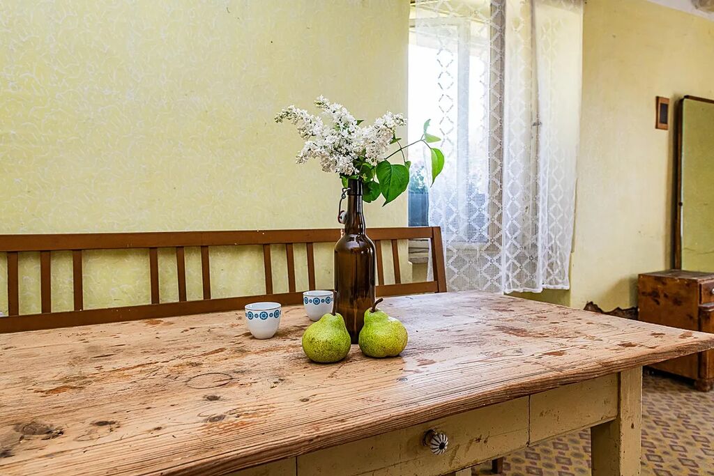 V domě se nachází kuchyně s jídelním koutem, prostorná ložnice, obývací pokoj, pokoj a koupelna s vanou. Vytápění domu je zajišťováno krbovými kamny v každé místnosti. Dřevěná okna a dveře jsou původní. Prostory půdy jsou aktuálně využívány jako úložný prostor.