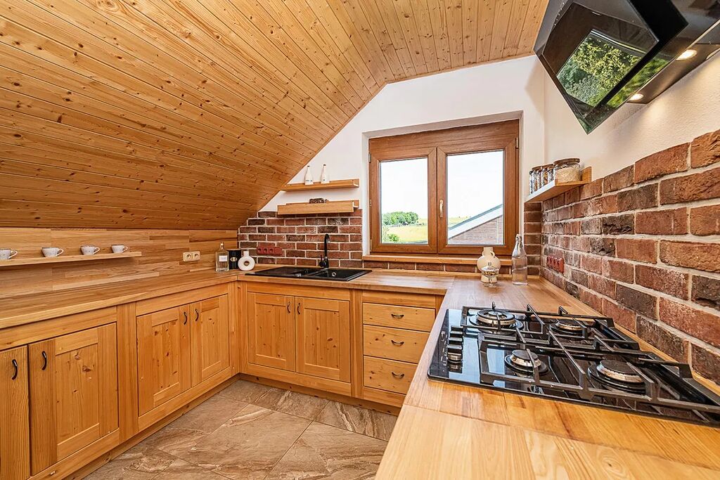 V přízemí se nachází dvě prostorné místnosti, koupelna se sprchou a toaletou a kompletní technické zázemí. Druhé patro tvoří obytná část s kuchyní, dvěma ložnicemi a koupelnou se sprchovým koutem a vanou, toaleta je samostatně. Z druhého patra vede schodiště na půdní galerii s dalšími dvěma menšími pokoji.