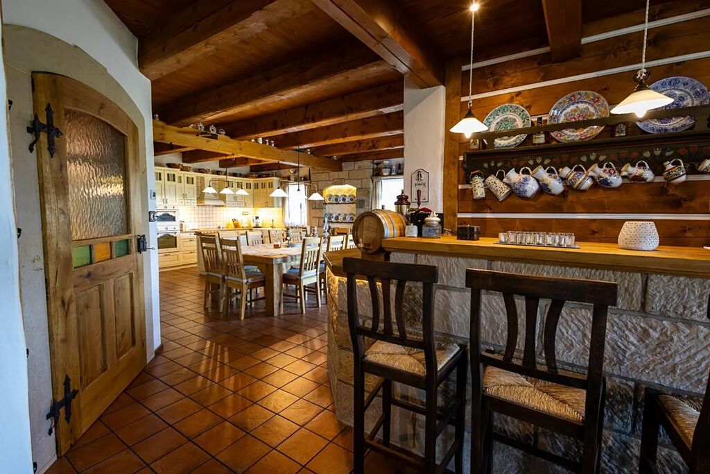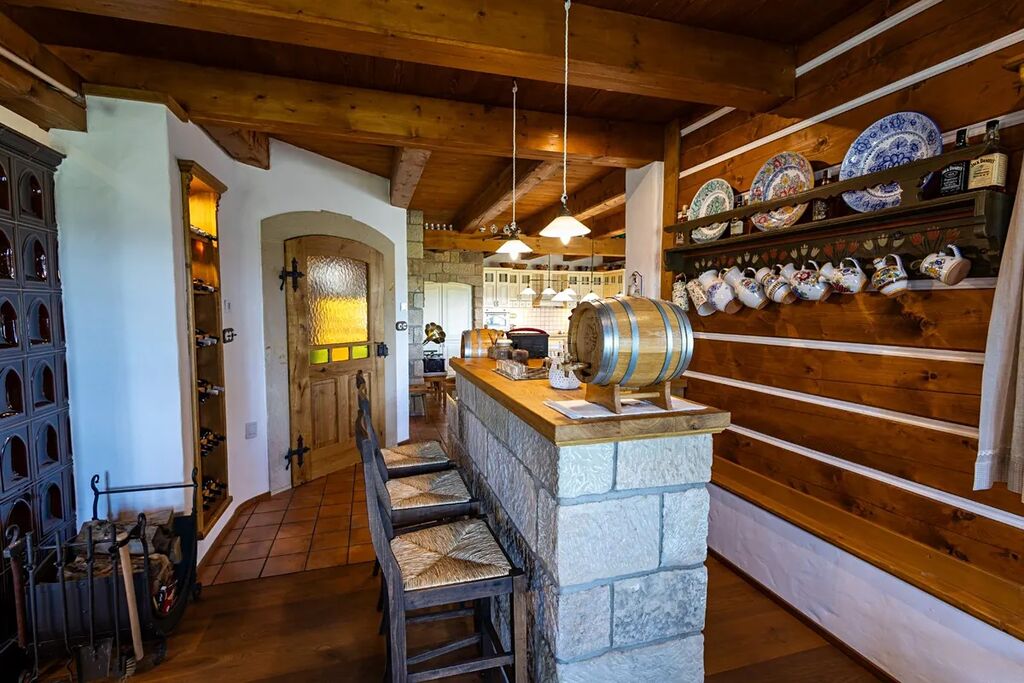 Na pozemku se nachází dokonalá roubenka o výměře 300m2 a stodola o rozloze 800m2 s možností vybudování dalšího ubytování a společenského života. Najdete zde také obrovský kamenný vinný sklípek a gril lokomotiva.