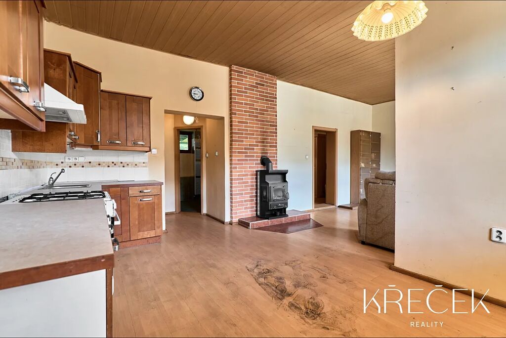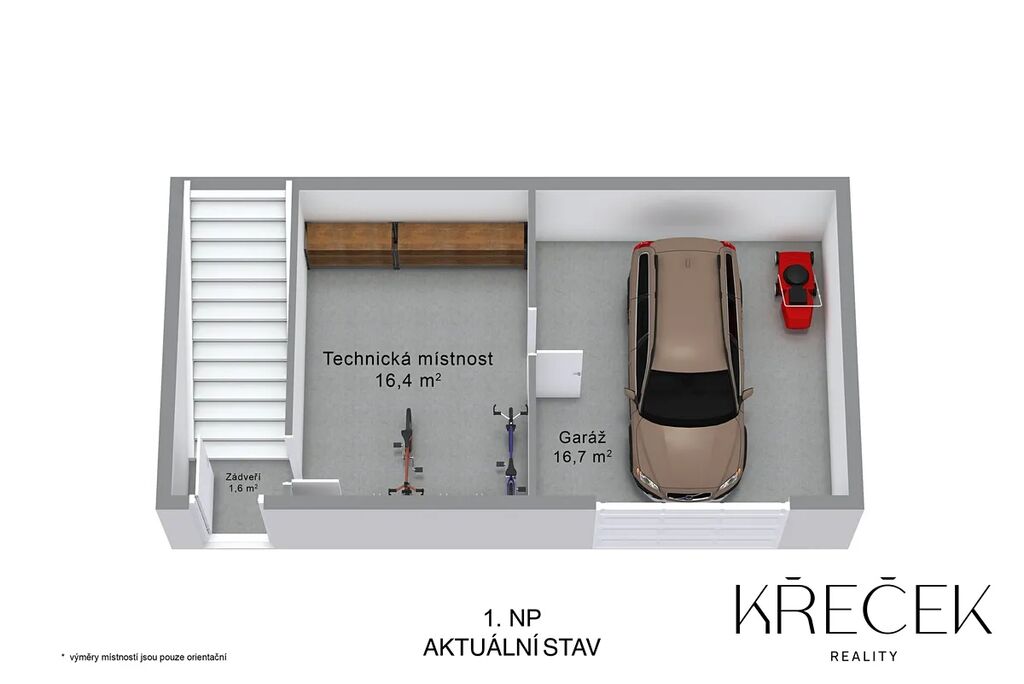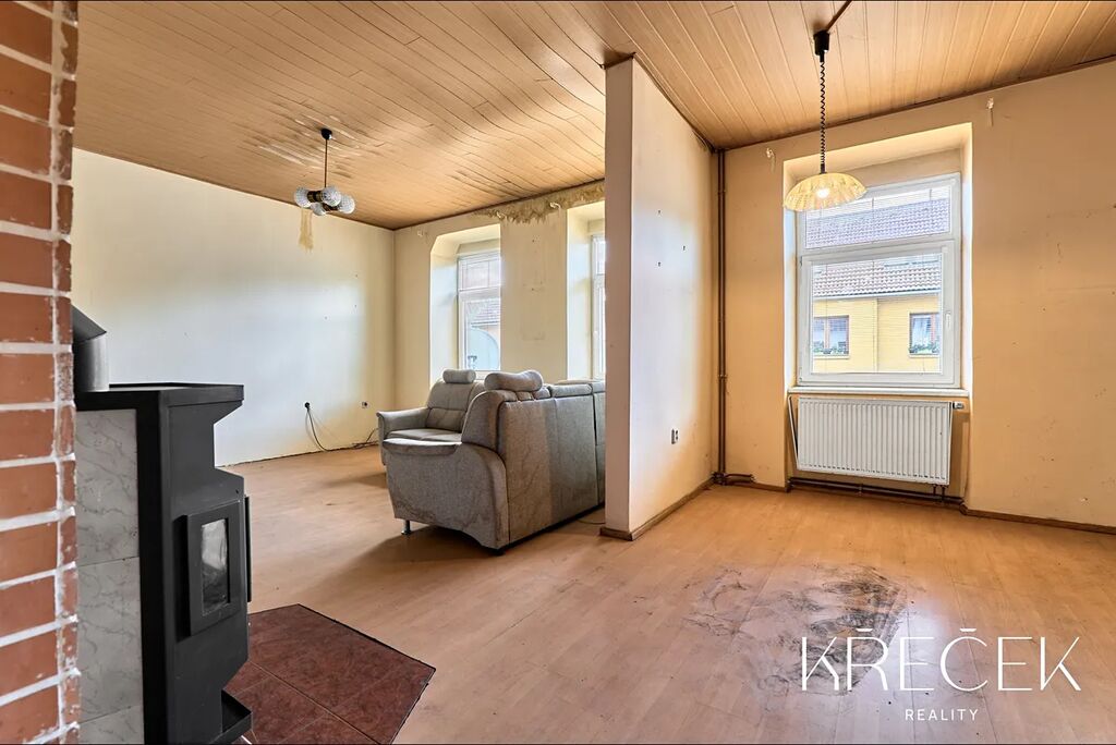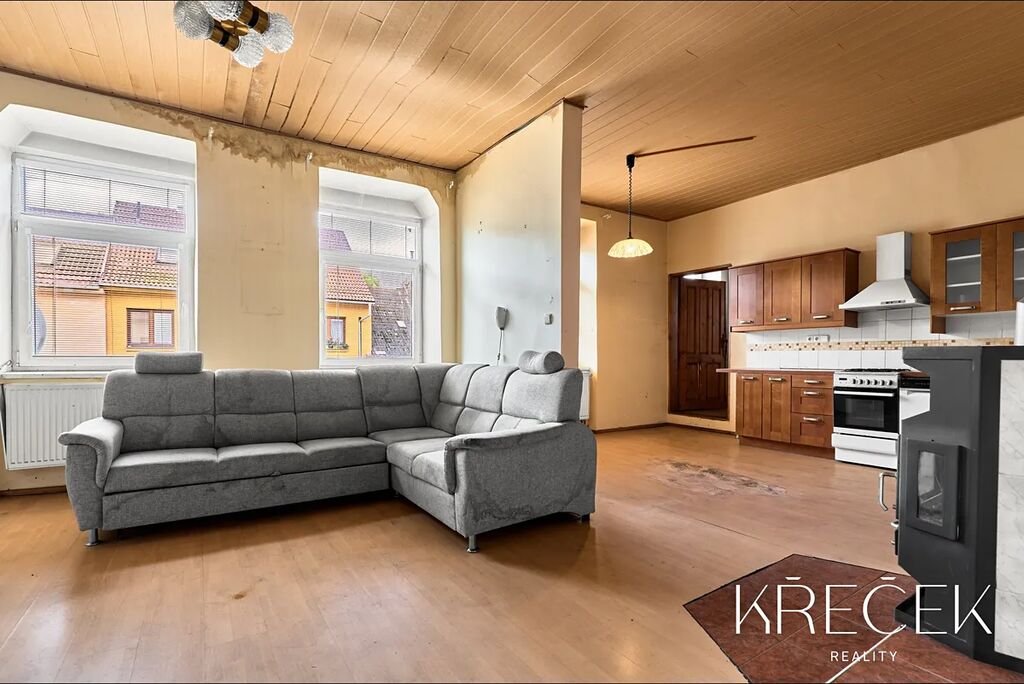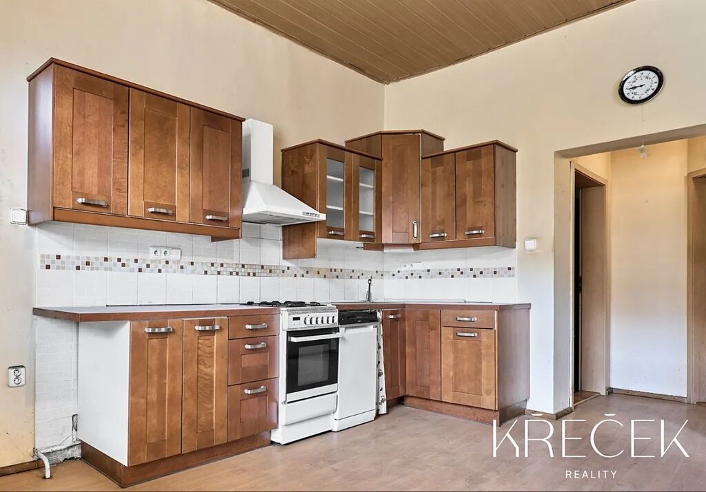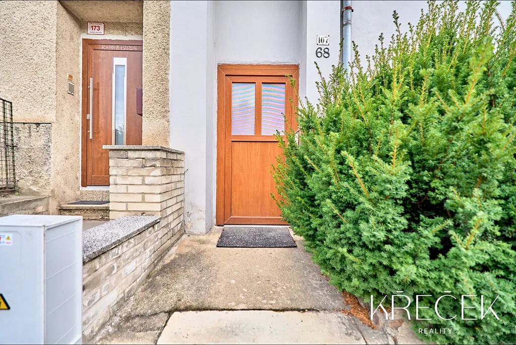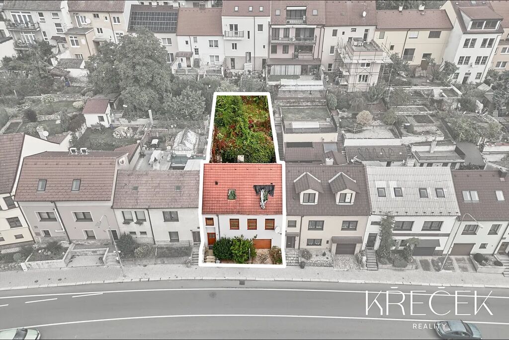 Řadový dvoupatrový dům s vestavěnou garáží a zahradou prošel na přelomu tisíciletí kompletní rekonstrukcí včetně podkrovního patra. V prosinci 2024 horní patro zasáhl požár, nyní je nutná jeho rekonstrukce, statický posudek však potvrzuje stabilitu stavby a možnost dalšího užívání. Aktuálně s dispozicí 5+1: přízemí – zádveří, technická místnost a garáž; 1. patro – vstupní hala, kuchyň, pokoj, koupelna s WC a přístup na zahradu; obytné podkroví – tři pokoje, koupelna s WC a menší komora/šatna. Dům nabízí prostornost, historii a potenciál pro nového majitele.