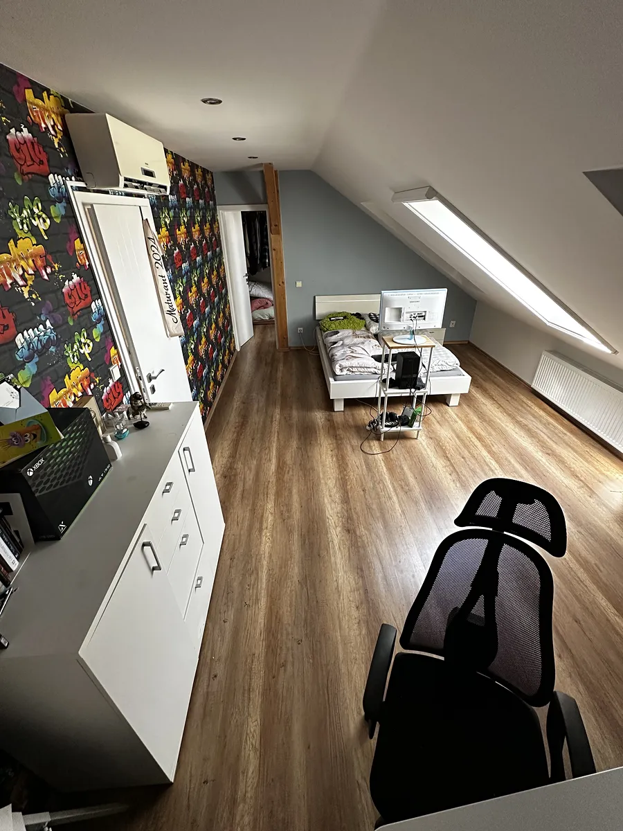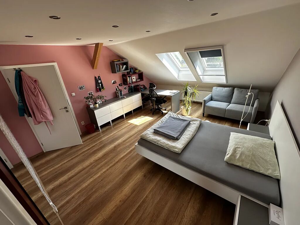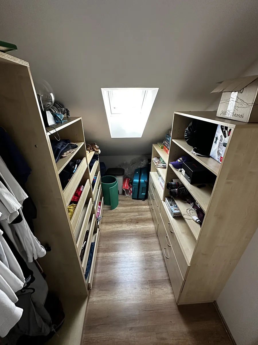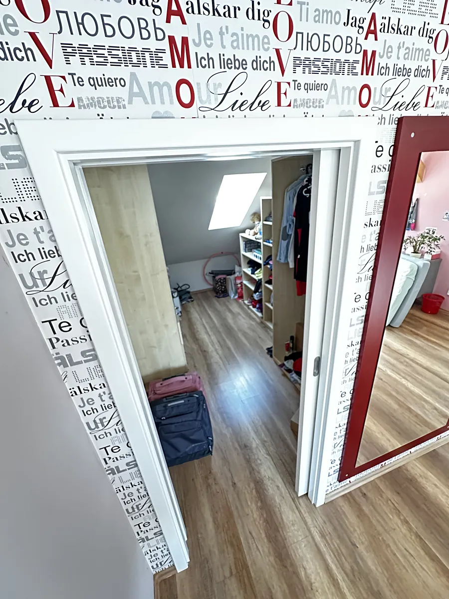 V podkroví rodinného domu nalezneme 2 obytné pokoje se soukromými šatnami a LP koupelnu s rohovou vanou. Každý z pokojů má velkorysou plochu 30 m². Obě podkrovní ložnice jsou vybaveny klimatizačními jednotkami pro Váš komfort během letních dní.